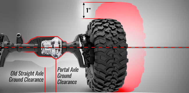 ✅ เพลาพอร์ทัล (Portal Axles): เพิ่มความสูงใต้ท้องรถ ลดแรงบิดบิดตัว พร้อมเฟืองเหล็กเต็มชุด